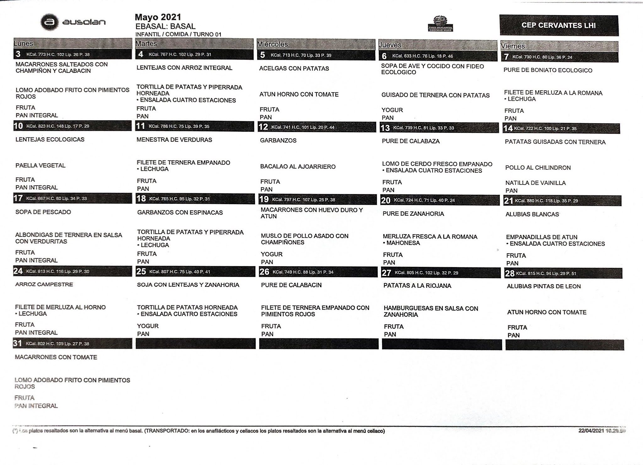 JANTOKIKO MENUA – MENU DEL COMEDOR